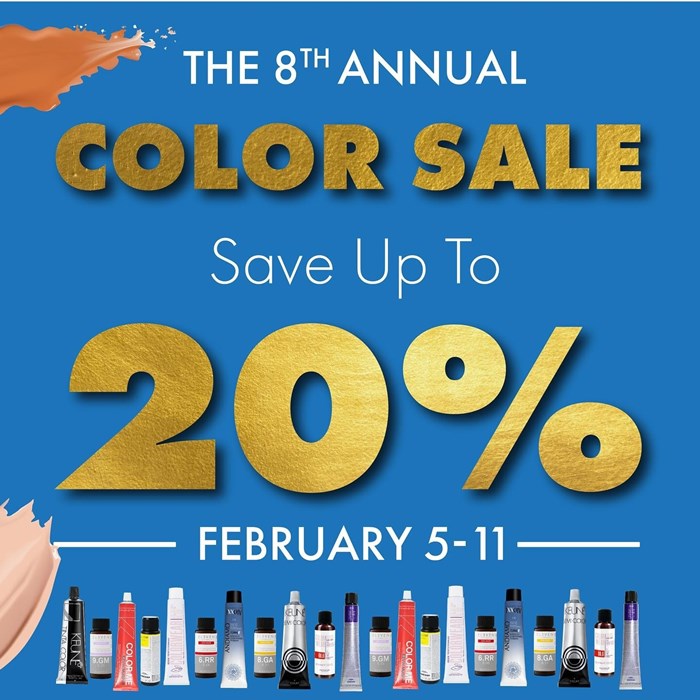 We do not know about you, but we are READY to add some color to our lives! 2022 will be a year full of fun and playful hair color trends. So far, this year, we are seeing everything from incredible pastels to keeping colors natural and neutral and all the way to the beloved platinum blonde. To help you add color to your customer’s lives we are kicking off our 8th Annual Color Sale! This year’s Color Sale will run from February 5th through February 11th, 2022. This year we are offering up to 20% off your FAVORITE demi permanent and permanent color from brands such as; Aloxxi, Alfaparf, Color.Me by Kevin.Murphy, Keune, Eleven, and Milbon.