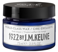 Keune 1922 by J.M. Keune line was developed specifically for men. This product line has been embraced and recommended by barbers and stylists alike. Now you can provide your male clients with the best care for their hair and their beards. The World Class Wax is a shaping wax with medium hold and a shiny finish. Perfect for sleek styles on shorter hair. Contains Creatine and Hemp.
