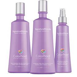 ColorProof SignatureBlonde- Brighten and illuminate natural blondes, bleached blondes and silver tresses. ColorProof SignatureBlonde Violet Shampoo, Condition, and Restorative Filler instantly