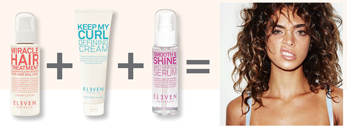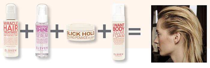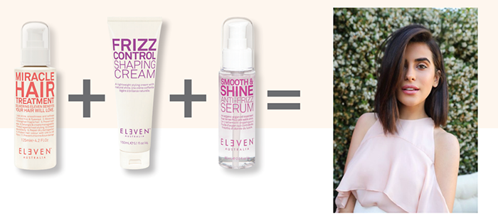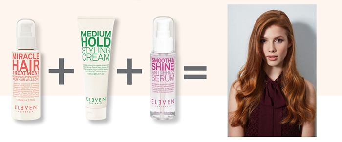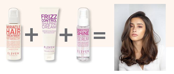 Method: Start with a base of Miracle Hair Treatment, then apply a blend of Smooth & Shine Anti-Frizz Serum and