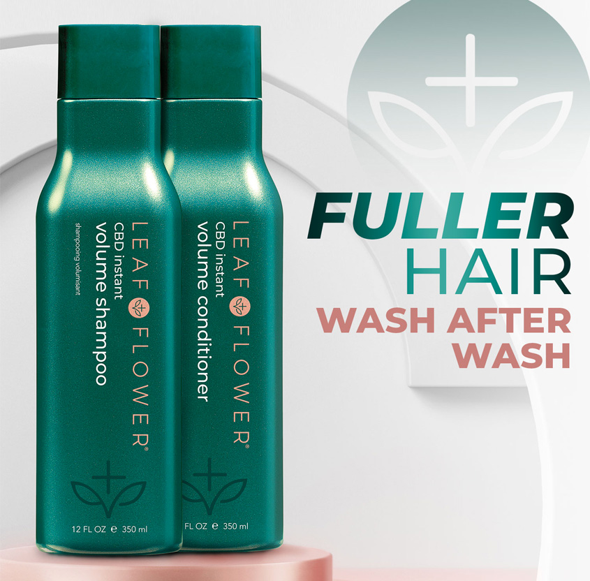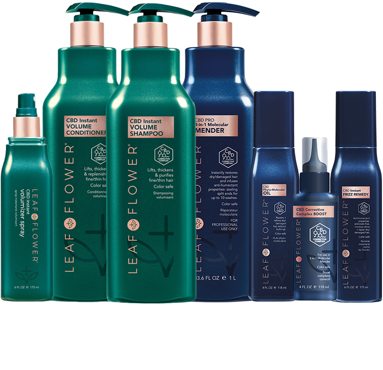 LEAF & FLOWER Brand Story About LEAF & FLOWER Developed for stylists, by stylists. This brand offers tangible results with a therapeutic and innovative line centered around the natural benefits of CBD.The exclusive LEAF & FLOWER™ CBD Corrective Complex elicits an entourage effect by combining key cannabinoids under high pressure and extremely low temperatures to preserve efficacy and deliver instant results for all hair types- making hair stronger and more predictable with continued use. CBD Instant Volume Shampoo & Conditioner Designed to thicken, volumize and strengthen fine/thin hair. Too much moisture at the scalp and strands tend to become limp and lifeless. Not enough moisture and roots lose their lift and hair feels brittle, looks flat. Centered around extensive research and testing, Leaf & Flower has pioneered a breakthrough plant derived technology that synthesizes with key cannabinoids to correct this imbalance, resulting in the formation of healthy thicker-looking strands and a remarkable boost in natural volume throughout the hair without damage or dryness. CBD Instant Volume regimen targets both the scalp and follicle to facilitate an internal and external transformation of the hair. shop leaf & flower