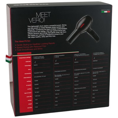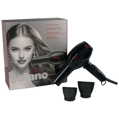 Solano Vero Professional Dryer provides speed drying with reduced frizz adds shine and smoothes hair.